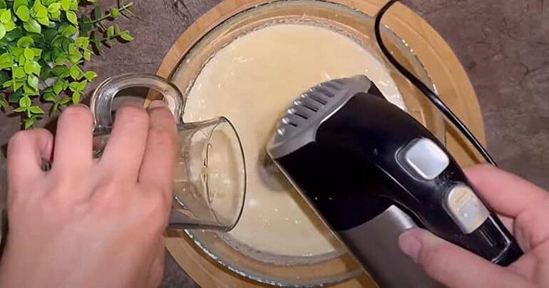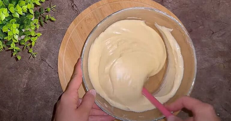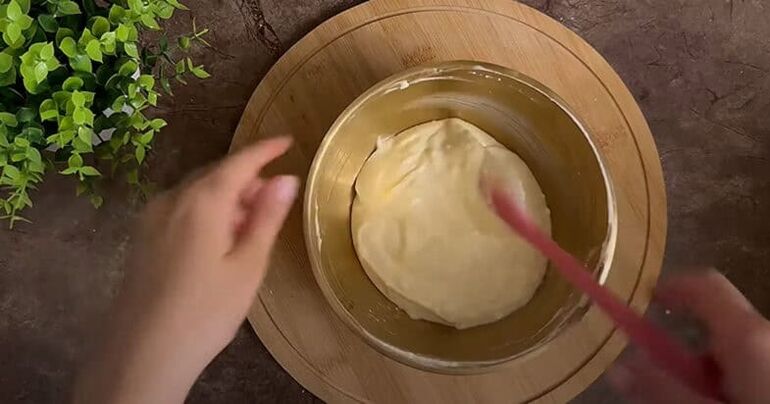 К сливочному сыру добавляю сахарную пудру и яйцо, перемешиваю до кремовой массы. Перекладываю её в кондитерский мешок.
