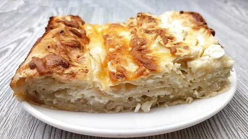 Между каждой складкой аккуратненько распределите творожно-кефирную заливку и добавьте небольшими кусочками сливочное масло. Отправьте форму в духовой шкаф, разогретый до 180 градусов, приблизительно на сорок минут.