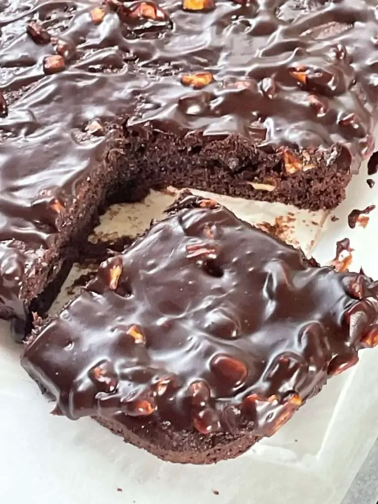 Плитку шоколада разломайте на кусочки, добавьте к ней 40 мл молока и растопите на водяной бане или в микроволновке. Этой глазурью нужно полить десерт после приготовления. При желании посыпьте орехами или миндальными хлопьями.