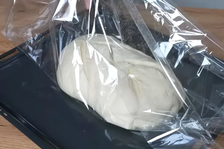 - Расстойка и выпечка. Обильно присыпьте шов мукой и поместите заготовку в объемный рукав (важно, чтобы оставалось много места для пара). Оставьте в покое на 40 минут. Перед тем как завязать концы, сделайте на тесте глубокие надрезы (около 1 см).