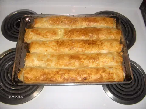 Тесто раскатывается на столе, смазывается маслом, сверху кладем начинку и заворачиваем в рулет. Рулет лучше формировать двумя слоями теста, если любите сдобу – тогда три.