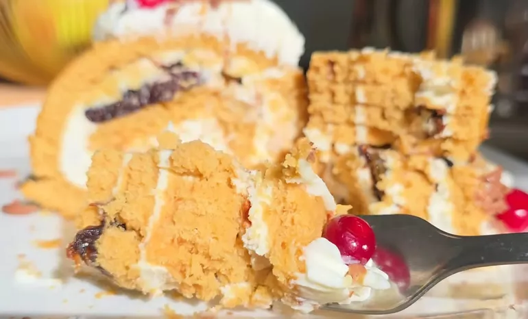 Этот десерт — воплощение домашнего тепла. Он получается настолько мягким и изысканным, что легко затмит покупные торты на любом торжестве. Сметанная кислинка в сочетании с ароматом меда и терпкостью чернослива — это классика, которая нравится всем.