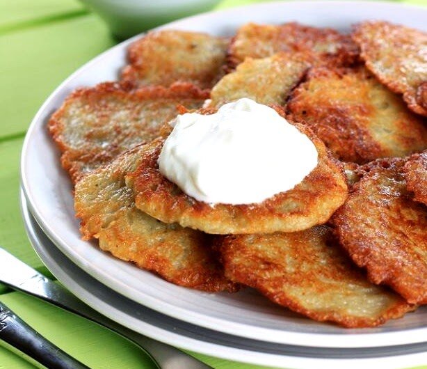 Совет: если хотите, чтобы драники были еще более воздушными, пропустите картофель через мясорубку.