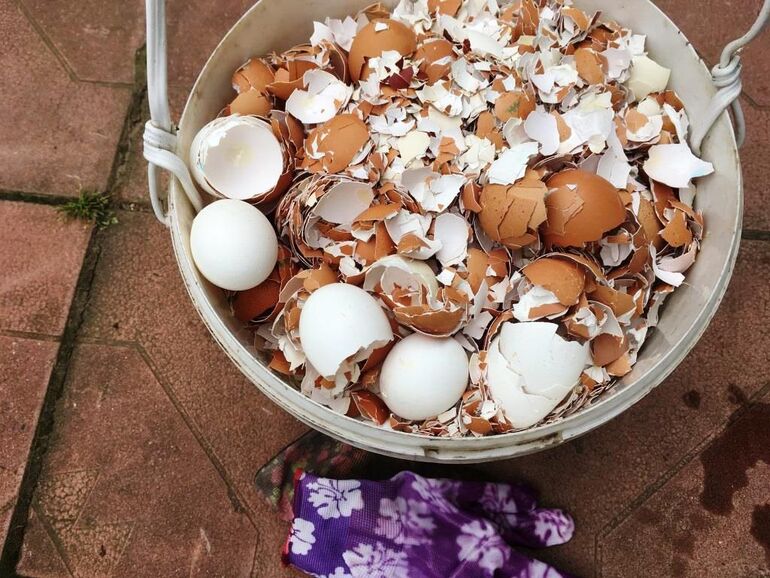 - Использованная яичная скорлупа
