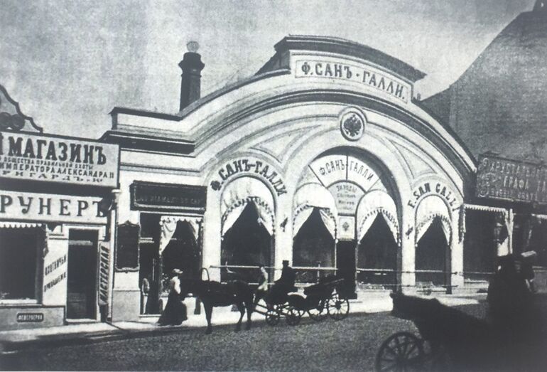 Как рассказывает известный московский краевед Алексей Дедушкин на страницах журнала «Московское наследие», в 1883 году, часть старинных построек была соединена остекленным чугунным сводом по проекту архитектора А.А. Мартынова, и здесь paзместился пассаж металлургического завода графа Франца Сан-Галли, производившего художественное питье, строительные детали и отопительное оборудование для помещений.