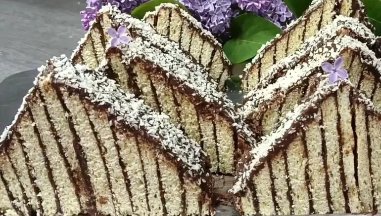 Кокосовое пирожное — настоящая классика, которую любят почти все, но сегодня мы приготовим его в немного необычном формате. Вместо привычных квадратов нарежем его треугольниками, и благодаря этому десерт сразу будет выглядеть интереснее и эффектнее. Вкус останется всё тем же знакомым и любимым, просто подача станет более оригинальной и игривой. Такой вариант отлично подойдёт и для гостей, и для праздничного стола, ведь выглядит он красиво и подавать его очень удобно. Если вам по душе шоколадно-кокосовые сладости, эта версия тоже наверняка станет одной из любимых.