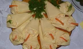 Сыр сворачивается конусом, после чего наполняется полученной в миске массой.