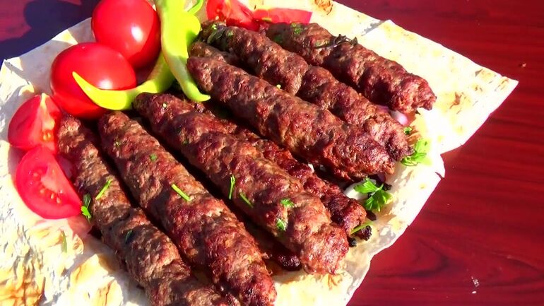- После того как кебабы будут готовы, подавайте их с маринованным луком и свежим лавашом.