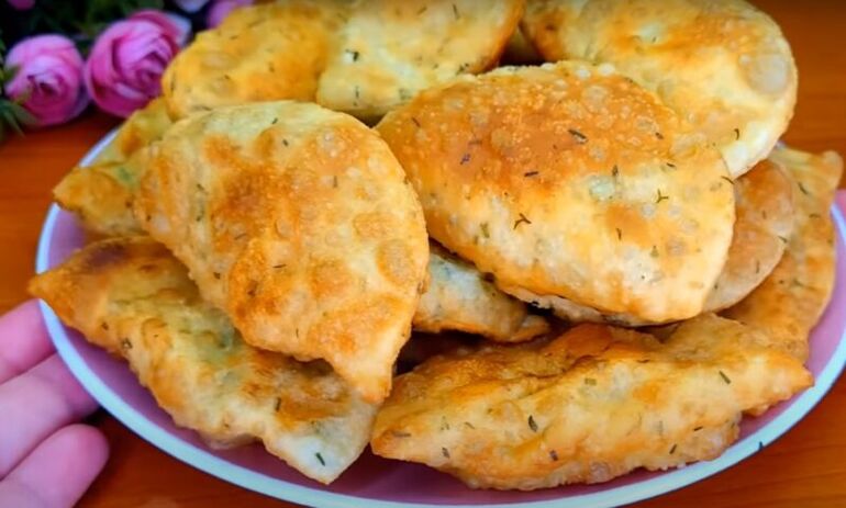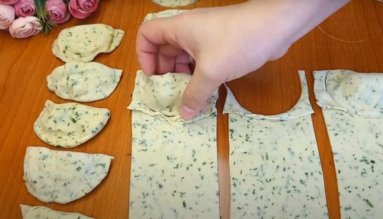 Форма пирожков может быть любая, соседка делает круглые, как лепешки, нарезая тесто большой чашкой, чтобы пирожки получились побольше.