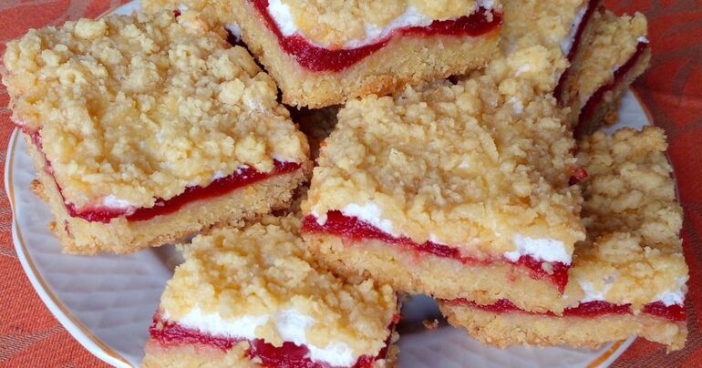 Смешайте просеянную муку с содой, солью, сахаром и ванилином. Добавьте размягченное масло и разотрите компоненты до состояния мелкой крошки. Добавьте яйцо и сметану, замесив однородное тесто. Разделите его на два неравных куска, оберните пленкой и отправьте в холод. Для кремов разлейте молоко и сок в разные сотейники, в каждый добавьте по 3 ложки сахара и столько же крахмала. Помешивая, держите смеси на огне до загустения, после чего проварите еще полминуты и уберите с плиты. Раскатайте большую часть теста и застелите им форму (дно и бортики). Чередуя, выложите обе начинки. Если крем загустел, можно слегка его подогреть или смазать ложку маслом для удобства распределения. Поверх крема натрите оставшийся маленький кусочек теста. Выпекайте в прогретой до 180 °C духовке около 30–35 минут. По желанию готовое лакомство можно посыпать пудрой. Надеюсь, рецепт вам понравится. Приятного аппетита!