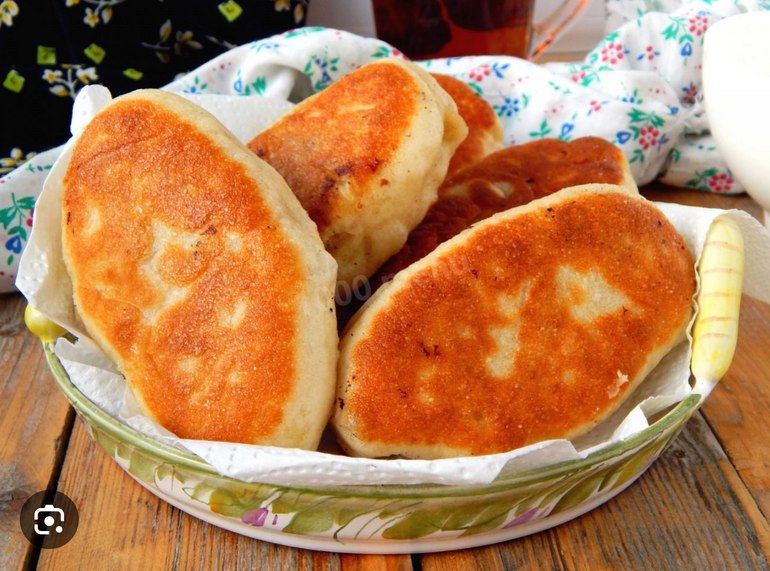 Разогреваем сковороду с достаточным количеством масла — его уровень должен доходить примерно до середины изделия. Обжариваем с двух сторон до аппетитной золотистой корочки. Готовые пирожки выкладываем на бумагу, чтобы убрать излишки масла. Подаем слегка теплыми.