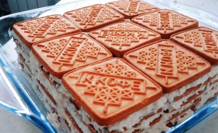 Чередуйте действия, пока не закончится печенье. Верхний слой можно не смазывать кремом. Но лучше все-таки смазать и посыпать сверху орехами и цукатами. Ну или тертым шоколадом — все зависит от вашей фантазии и вкусовых предпочтений.