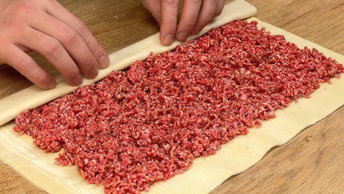Аппетитная выпечка из слоеного теста с сочной мясной начинкой, луком, зеленью и тянущимся сыром прекрасно подойдет как для семейного ужина, так и для праздничного стола. Дополняет вкус нежный йогуртовый соус с огурцом и чесноком.