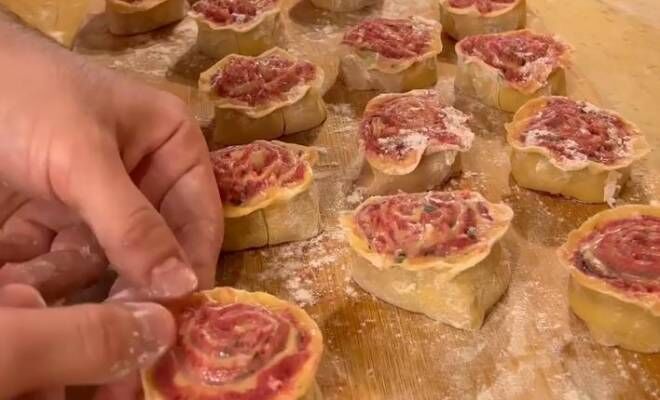Благодаря слоеному тесту текстура получается хрустящая и одновременно нежная. В фарше содержится белок, полезный для организма. А в йогурте содержатся пробиотики, несущие пользу для микрофлоры кишечника.