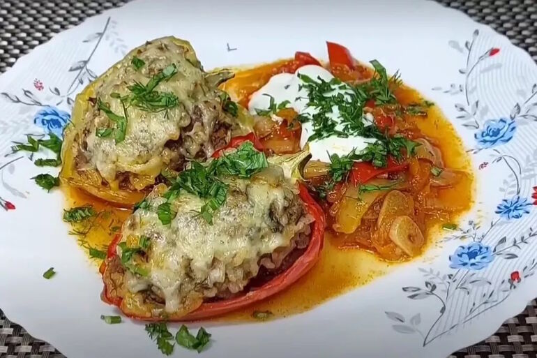 - Готовые перцы подаем с запеченной поджаркой, они получаются ароматными и сочными.